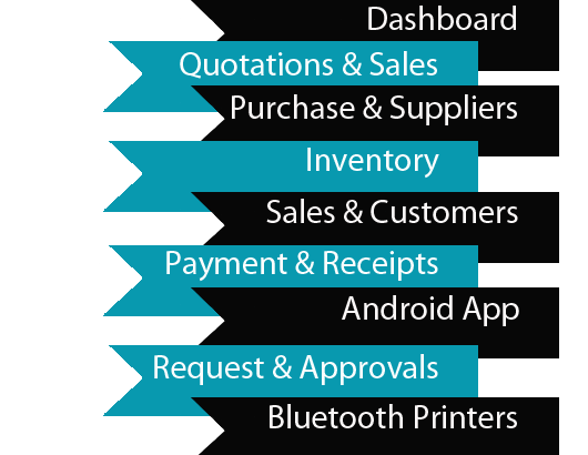 Quotations, Sales Orders, Invoices of Sales, Receipts of Sales, Sales Returns, Reimbursement, Proforma Management, Tax Management, Order Request and Acceptance.