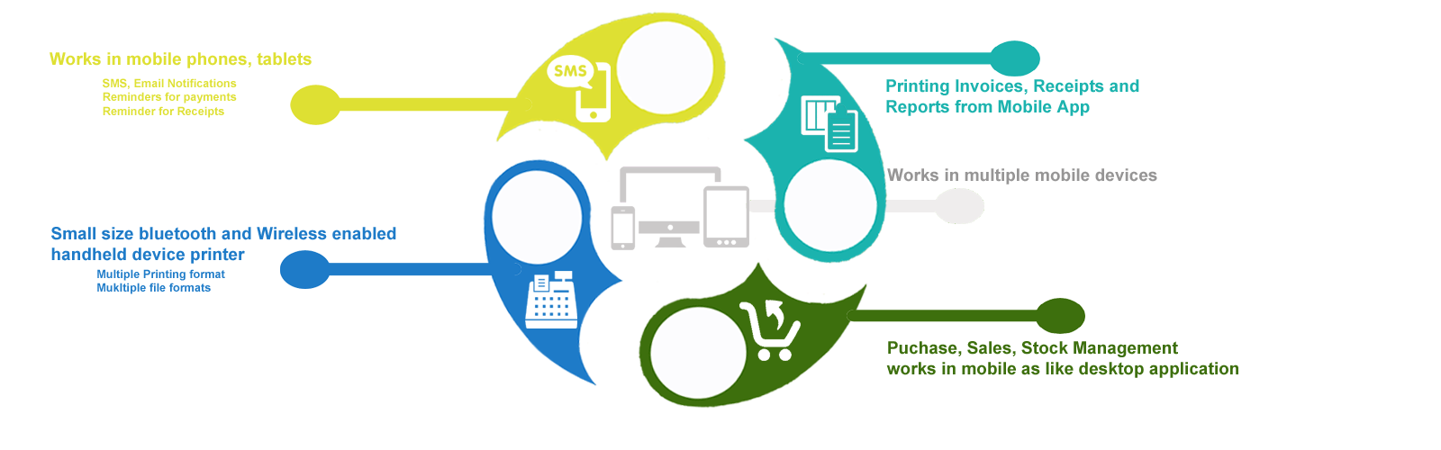 Smart POS is a simple mobile app works in mobile phones, tablets, and it is integrated with desktop application also. The smart POS app is used for making Quotation Analysis, Purchase, Inventory, Vendor Analysis, Vendor Payments, Sales Invoices, Sales Receipts, Expenses and reports. Smart POS is interlinked with Small size bluetooth and Wireless enabled handheld device printer for printing invoices, receipts and reports from mobile app. We can easily analyze customers orders, delivered products, pending products, payments and outstandings. Based on custom settings automatic alerts will be sent to customers, managers and vendors. Email and SMS notification will be send to customer for their payment pending, placed orders, delivered orders and pending orders by predefined or custom templates. Android mobile App used for placing an customer orders and tracking the orders. Customer information is captured and product is delivered against customer order.